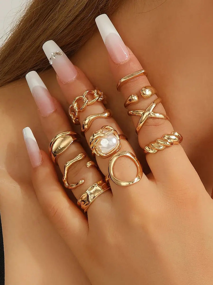 18K Gold Plated Waterproof Multi-color Crystal Chunky Striped Texture Rings Delicate Shiny Square Zircon Wed Ring Punk Jewelry